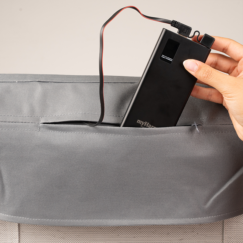 Comfort ist eine kabellose Sitzauflauge mit Infrarot-Technologie und aufladbarer Powerbank.