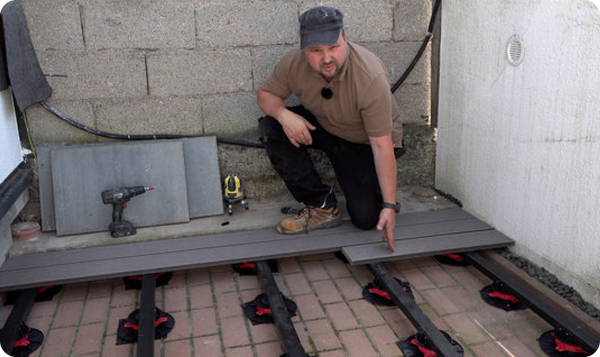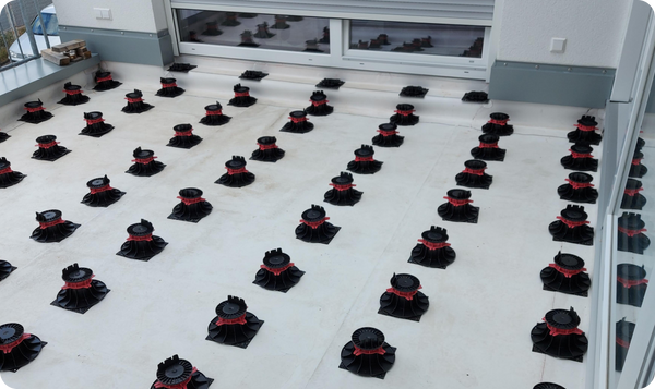 - Stelzlager im Raster (max. 40cm) auf die Fläche setzen.
