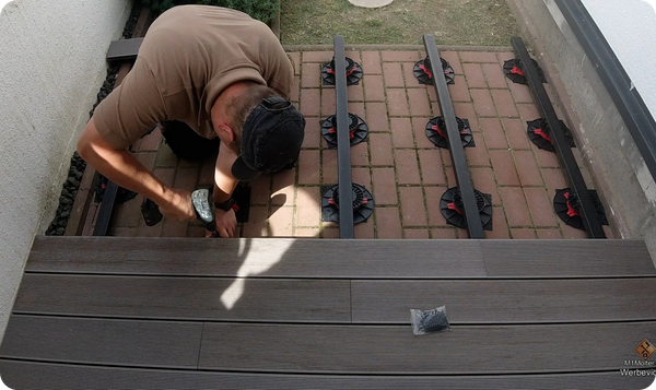 - Fixiere die Profile mit Schrauben oder Clips auf den Stelzlagern.
