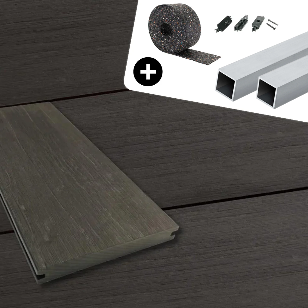 Das Rundum-Sorglos-Paket für deinen Terrassenbau: Pflegeleichtes und langlebiges WPC-Komplettset Nero Antik Massivdiele