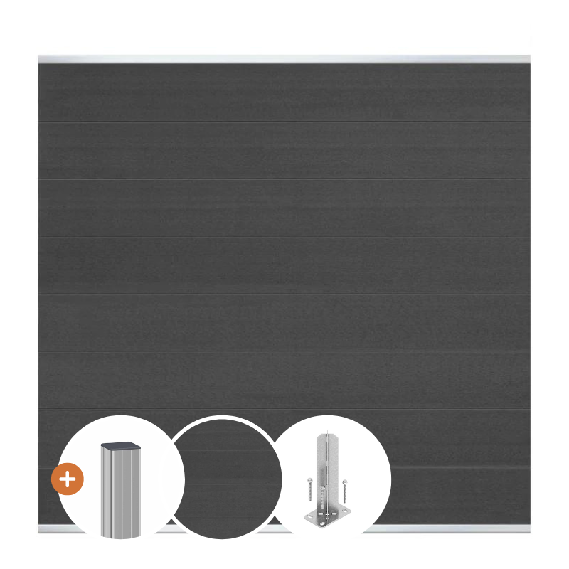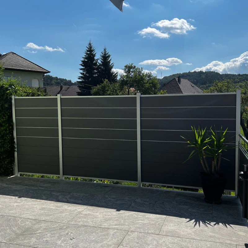 Farbe: Anthrazit | Pfosten Silber WPC Zaun Komplettset Stecksystem Anthrazit / Anthrazit