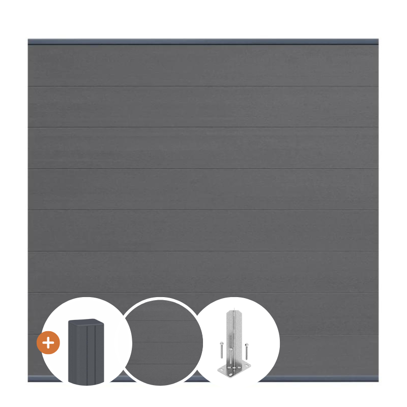 WPC Zaun Komplettset Stecksystem Grau / Anthrazit