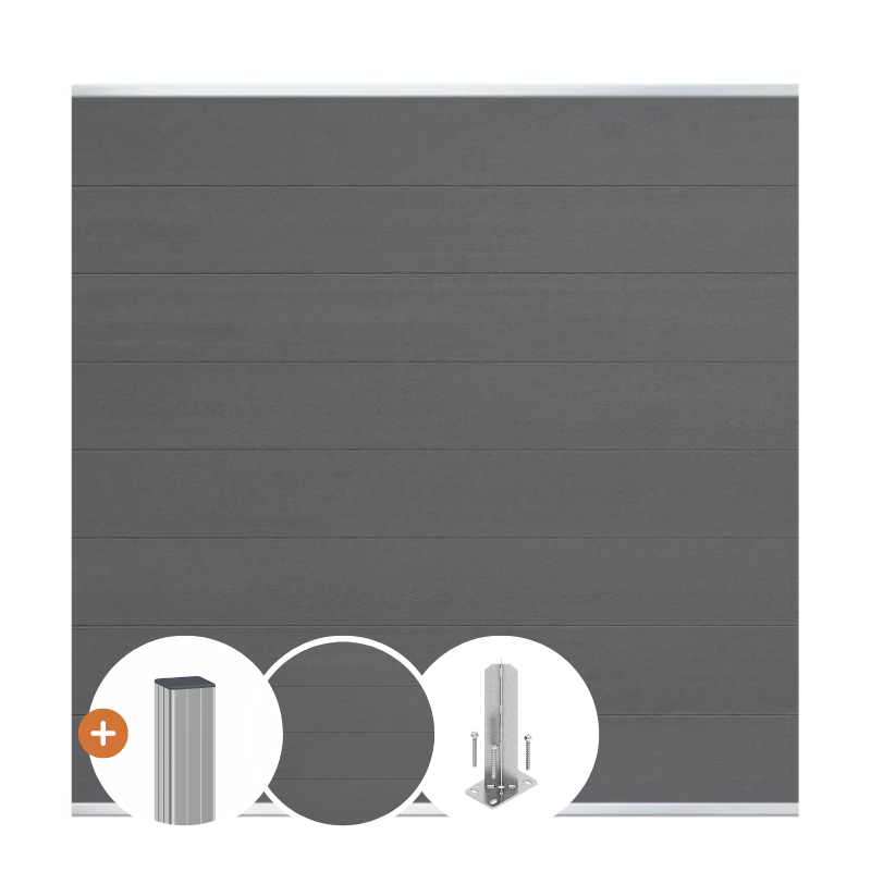 WPC Zaun Komplettset Stecksystem Grau / Silber